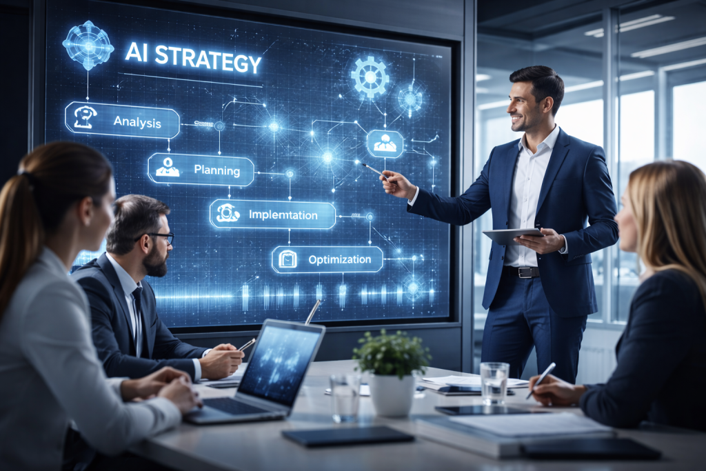 Ontwikkeling van een AI-strategie, governancekader en implementatieplan.